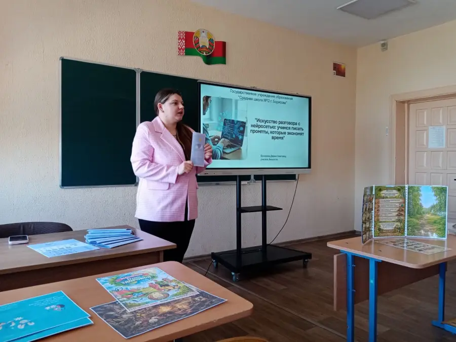 В рамках ставшего уже традиционным XV педагогического марафона руководящих работников и специалистов образования Минской области состоялось яркое и необычное выступление представителя нашего учреждения. Учитель биологии ГУО «Средняя школа №12 г. Борисова» Волковец Дарья Олеговна провела авторский мастер-класс под интригующим названием «Искусство разговора с нейросетью: учимся создавать промпты, которые экономят время».Дарья Олеговна убедительно показала: искусственный интеллект — не конкурент, а надежный ассистент. Но чтобы нейросеть стала реальным помощником, нужно уметь правильно формулировать запросы (промпты). Этому искусству и был посвящен мастер-класс.